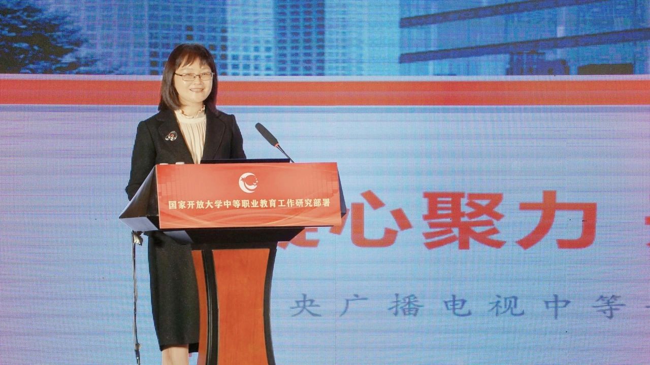 教育部職業教育與成人教育司院校處副處長李恒作專題指導;國家開放大學黨委委員、副校長,中央廣播電視中等專業學校(以下簡稱中央電中)校長范賢睿出席活動并作主旨報告;山東省教育廳、臨沂市政府、山東開放大學的領導現場致辭;國家開放大學中職教學部副部長(中央電中副校長)向藝芬作工作報告。