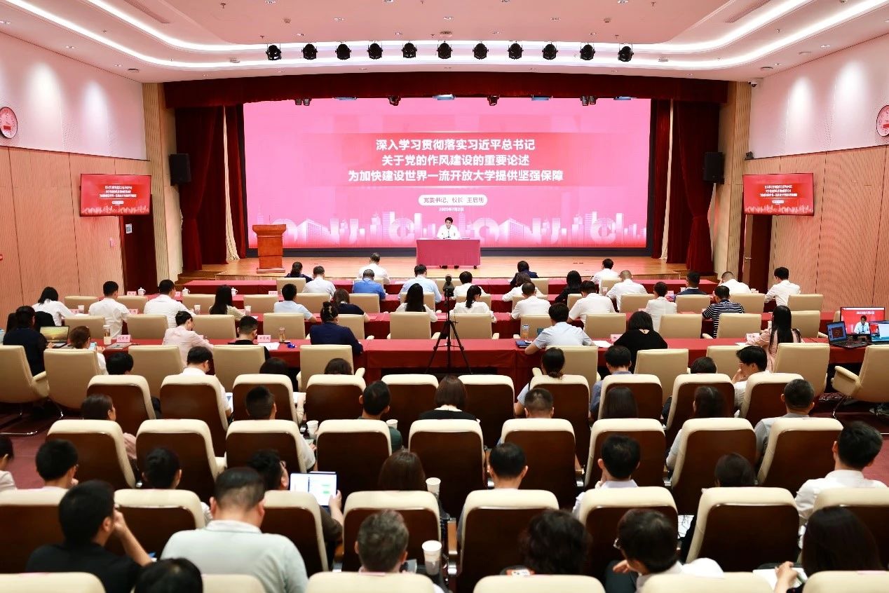 會議以線上線下相結合的方式舉辦,學校黨委委員、領導班子成員、各黨(總)支部書記、全體中層干部、校辦企業負責人和全體黨員參加。