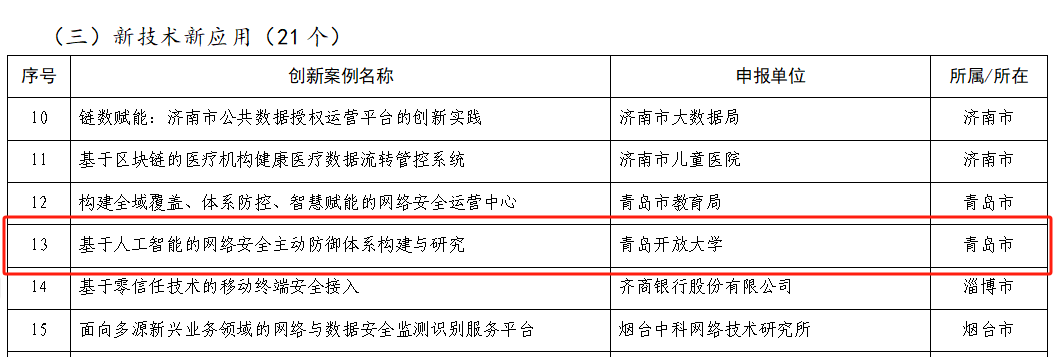 青島開放大學(xué):項目榮獲山東省網(wǎng)絡(luò)安全優(yōu)秀案例