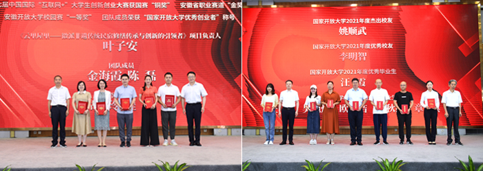 會(huì)上,還分別為黃山開放大學(xué)獲得“國家開放大學(xué)2021年度杰出校友”“國家開放大學(xué)2021年度優(yōu)秀校友”“國家開放大學(xué)2021年度優(yōu)秀畢業(yè)生”榮譽(yù)的學(xué)生,獲得“安徽開放大學(xué)2021年度優(yōu)秀畢業(yè)生”稱號(hào)的學(xué)生,獲得第七屆中國國際“互聯(lián)網(wǎng)+”大學(xué)生創(chuàng)新創(chuàng)業(yè)大賽國賽和省賽獎(jiǎng)項(xiàng)的學(xué)生進(jìn)行了頒獎(jiǎng)。