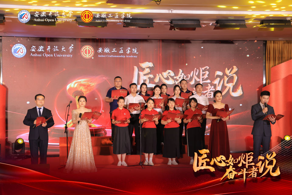 歙硯上的紋路,蘊藏精益求精的千年倔強;宣紙上的氤氳,綻放工藝美學的璀璨星光……”活動尾聲,學校青年教師和來自產業一線、民生服務等不同行業的學員代表共同演繹了詩朗誦《匠心頌》,將活動推向高潮,現場反響熱烈,掌聲陣陣。