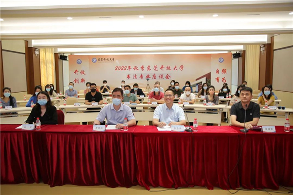 10月15日上午,東莞開放大學(xué)舉辦首屆書法專業(yè)座談會。活動采取“線上線下”相結(jié)合的方式,國家開放大學(xué)人文教學(xué)部副部長胡正偉、藝術(shù)學(xué)院副院長任天淳、書畫藝術(shù)教育研究院常務(wù)副院長唐應(yīng)山、藝術(shù)教育中心副主任徐航、書法專業(yè)主持教師牛濤、張曼瑩、楊耀、肖婷婷等在北京以線上直播方式參加會議,東莞開放大學(xué)副校長張念偉、教務(wù)處主任廖繼標(biāo)、美術(shù)教育中心主任喻涌波、首屆書法專業(yè)本科班班主任張靈老師及全體同學(xué)在主會場參加會議。