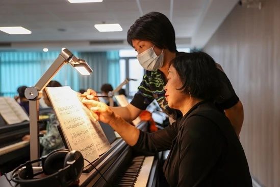 2023年11月30日,在福建省廈門老年大學,老師指導學員學習五線譜。諸葛寰宇/攝(資料圖片)