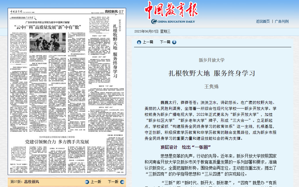 【中國教育報】新鄉開放大學——扎根牧野大地 服務終身學習