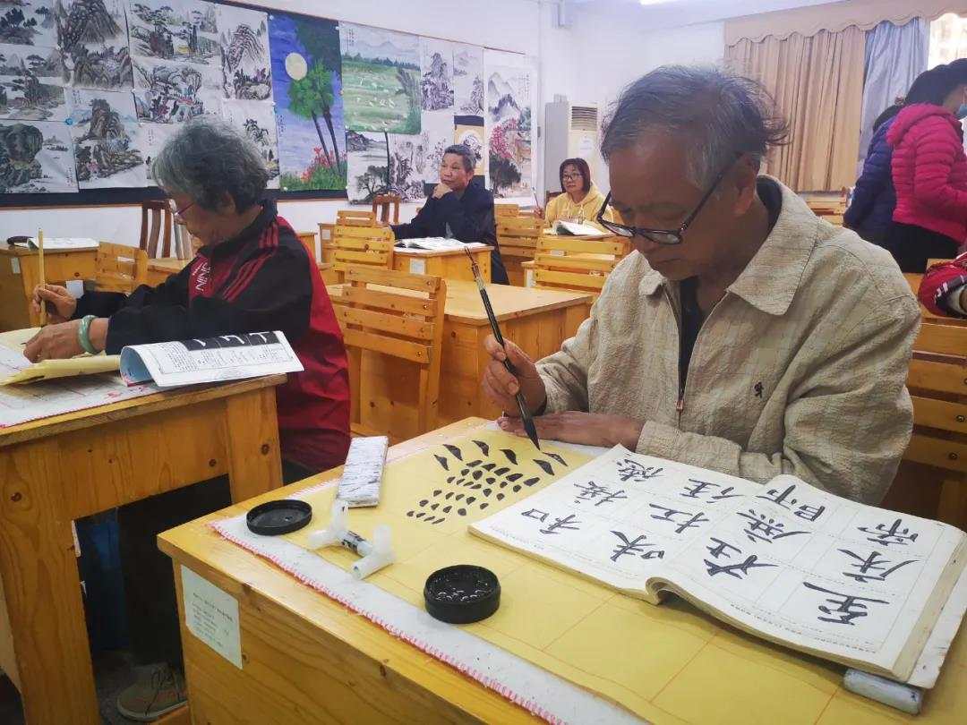 江門新會區老干部大學的學員在上書法課