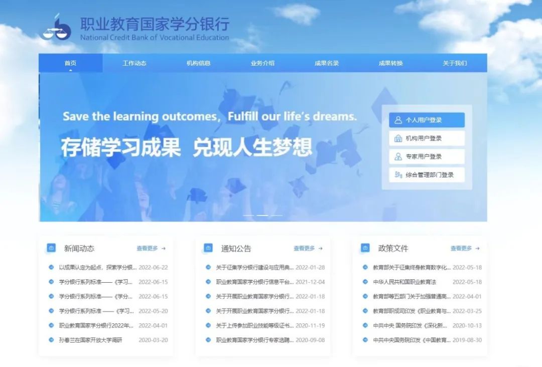 圍繞學習成果認證、積累與轉換業務,研制了《學習成果認定標準編制通用規范》等具有創新性的工具方法,開發了能夠支撐億萬級學習者開戶、積累與轉換的國家開放大學學分銀行信息平臺。