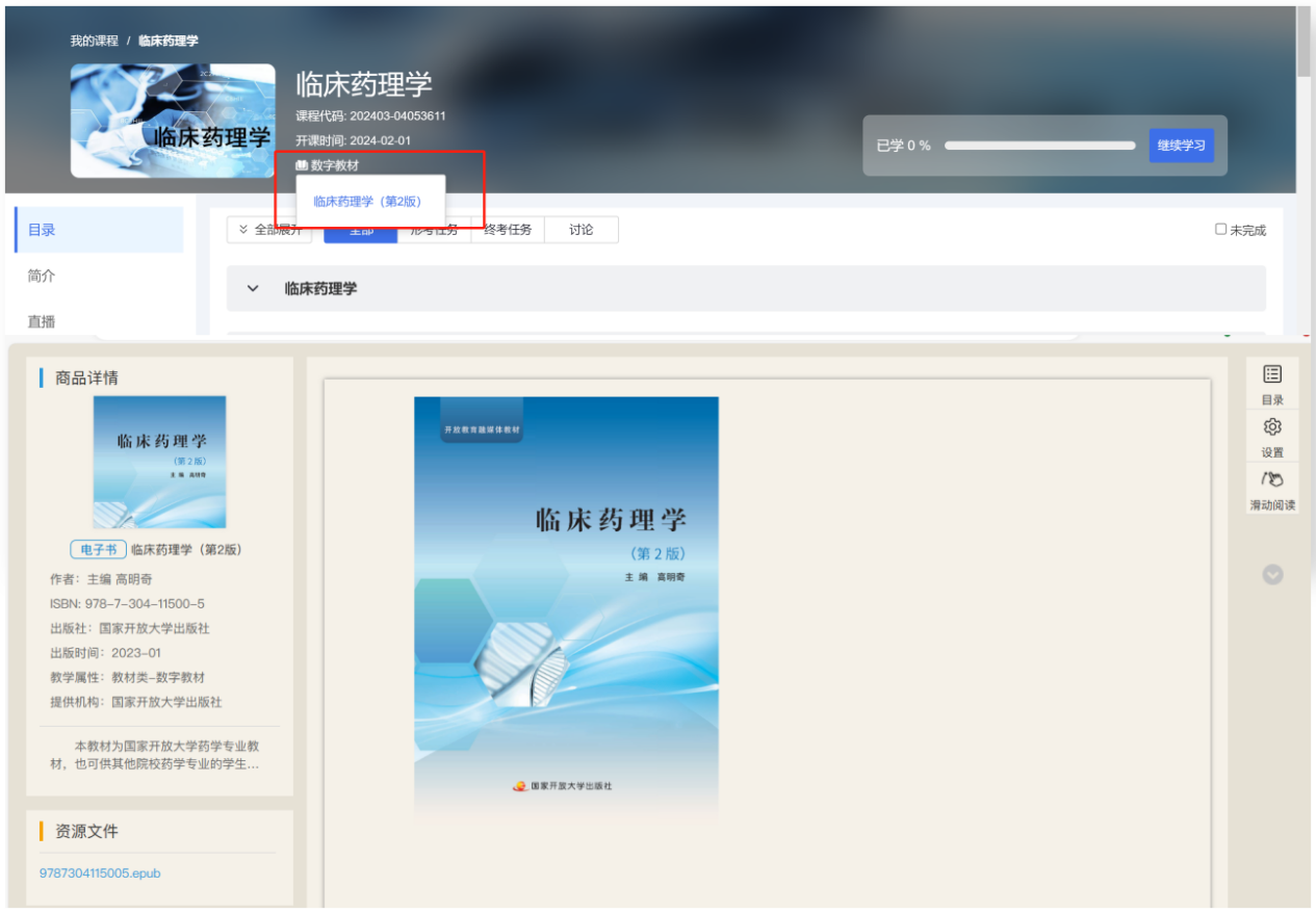 此外,數字化部協同出版集團等多部門推進數字教材與在線課程的融合應用,目前在學習網已有《臨床藥理學》等20余門課程接入數字教材,為學生提供更豐富的教材資源。
