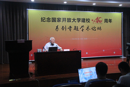 紀(jì)念國(guó)家開放大學(xué)建校40周年系列專題學(xué)術(shù)論壇上,華南師范大學(xué)丁新教授作報(bào)告