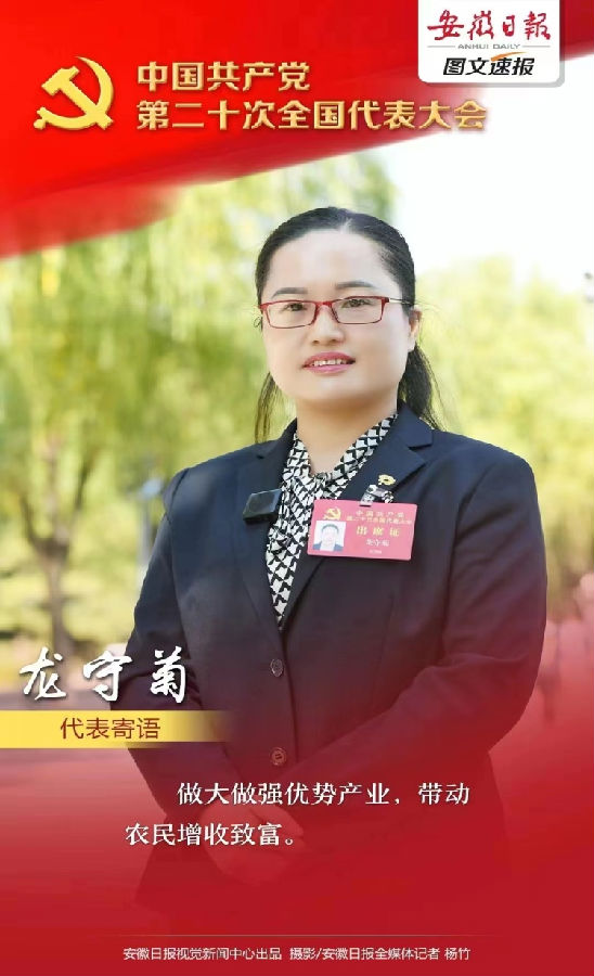 10月16日上午,龍守菊作為一名來自基層一線的少數民族黨員代表,走進人民大會堂,聆聽習近平總書記作報告,既感到無上光榮,也深感責任重大。她表示,在中國共產黨的領導下,有習近平總書記作為黨中央的核心、全黨的核心掌舵領航,有決心、有信心,在接續全面推進鄉村振興中做出更好的成績。