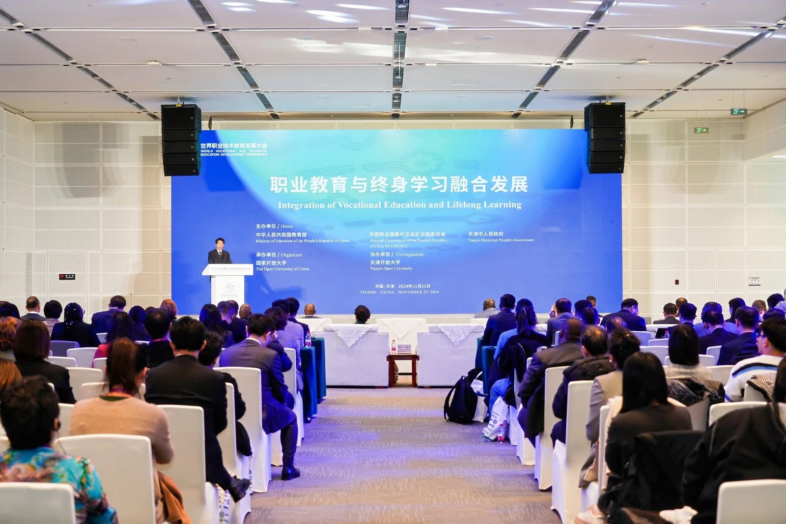 11月21日,2024世界職業(yè)技術(shù)教育發(fā)展大會開幕,同期,“職業(yè)教育與終身學(xué)習(xí)融合發(fā)展”平行會議在天津召開。來自全球11個國家和地區(qū)的政府官員、國際組織代表、教育界專家學(xué)者,以及來自7所中國職業(yè)院校的書記、校長,共計200余人參會。會議由國家開放大學(xué)黨委書記、校長王啟明主持。