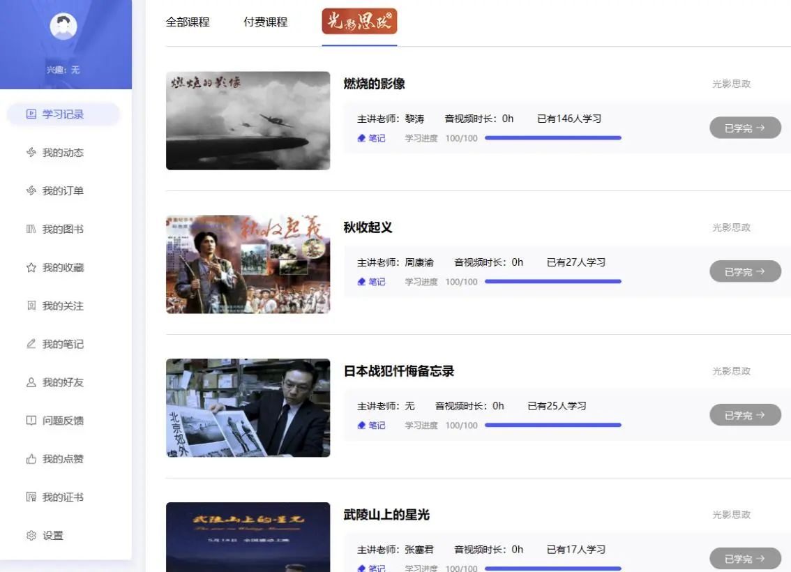 “光影思政”賞學專區界面