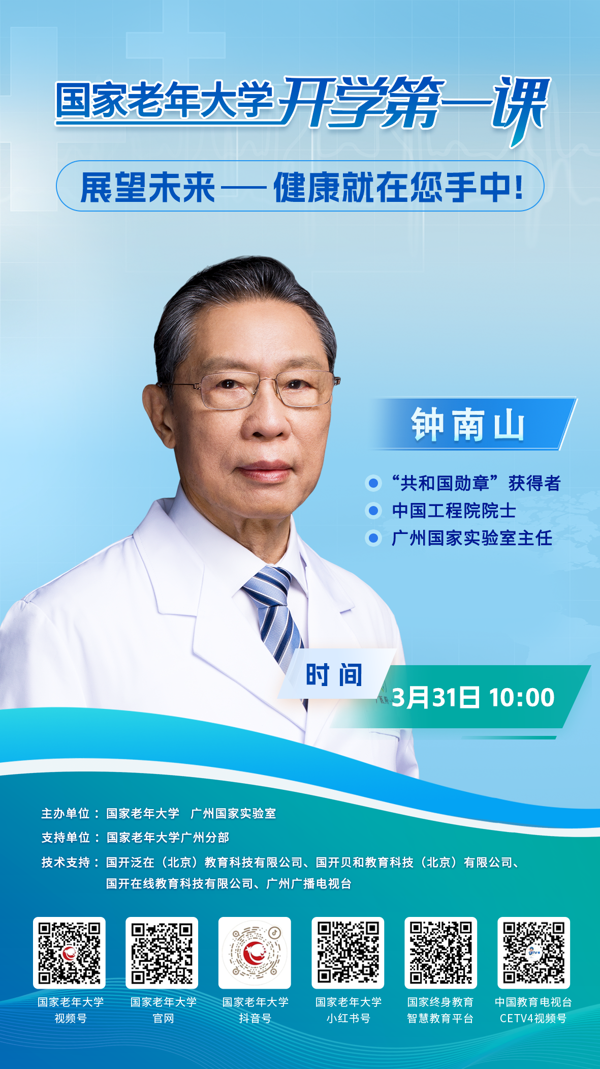 3月31日重磅直播,鐘南山院士開講國家老年大學(xué)“開學(xué)第一課”