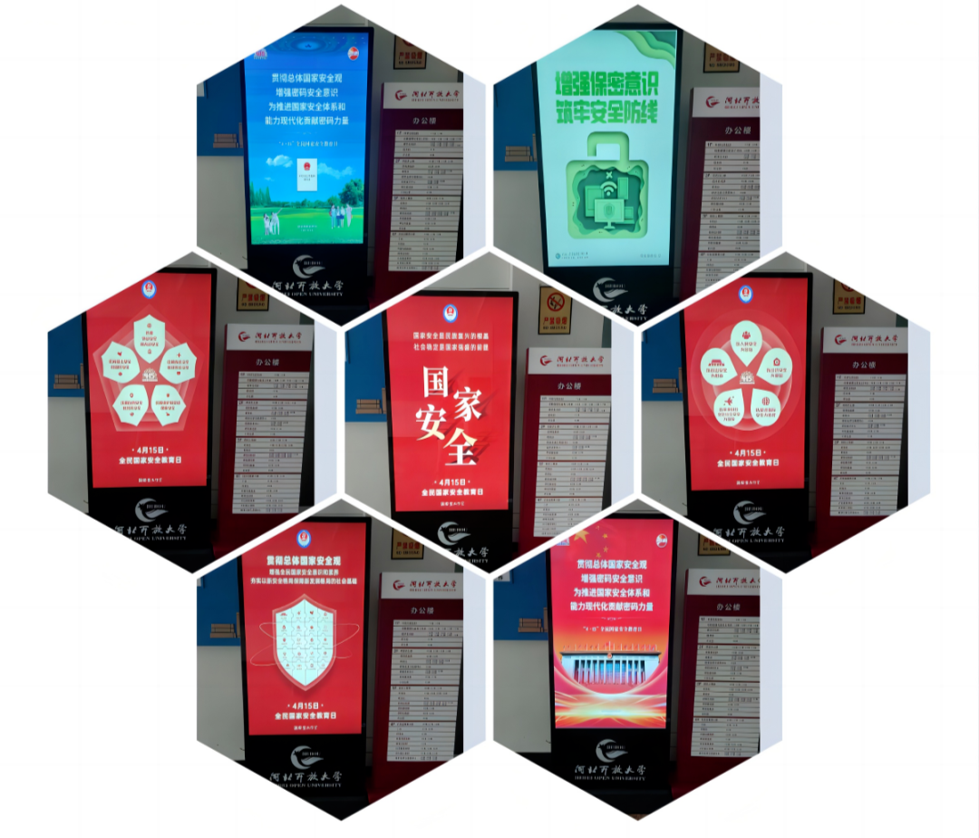 4月15日是第八個(gè)全民國(guó)家安全教育日,為進(jìn)一步貫徹落實(shí)總體國(guó)家安全觀,提高國(guó)家開放大學(xué)全體師生的國(guó)家安全意識(shí),增強(qiáng)防范和抵御安全風(fēng)險(xiǎn)的能力,國(guó)家開放大學(xué)以“貫徹總體國(guó)家安全觀,增強(qiáng)全民國(guó)家安全意識(shí)和素養(yǎng),夯實(shí)以新安全格局保障新發(fā)展格局的社會(huì)基礎(chǔ)”為主題,要求各分部、學(xué)院對(duì)國(guó)家安全活動(dòng)開展廣泛宣傳,利用學(xué)習(xí)網(wǎng)、公眾號(hào)、QQ、微信群、校園電子顯示屏等多種形式宣傳安全教育,營(yíng)造安全教育氛圍,切實(shí)增強(qiáng)廣大學(xué)生的憂患意識(shí)和底線思維,使國(guó)家安全意識(shí)深入人心。