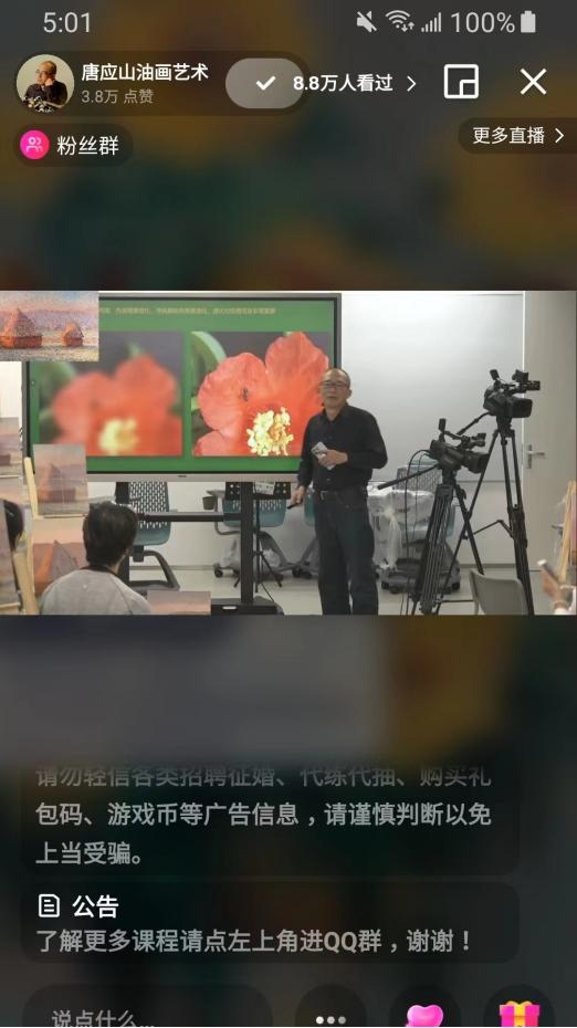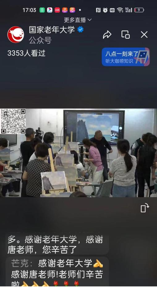 本期油畫(huà)班是小規(guī)模線下培訓(xùn)帶動(dòng)大規(guī)模線上美育教學(xué)的有效實(shí)踐,15名面授學(xué)員與11萬(wàn)名在線學(xué)員同步學(xué)習(xí)。在線直播精準(zhǔn)的鏡頭切換,保障了收看效果,直播課得到了全國(guó)油畫(huà)愛(ài)好者的廣泛好評(píng),大家對(duì)國(guó)家老年大學(xué)高質(zhì)量的美育課程大加贊揚(yáng)并深表感謝。