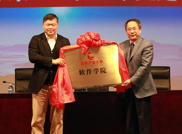 國家開放大學校長楊志堅分別與中國煤炭工業協會副會長王虹橋、中國社會工作協會副會長趙蓬奇、中國物流和采購聯合會副會長任豪祥、中國紡織工程學會常務副理事長王竹林、機械工業教育發展中心主任陳曉明、中國汽車維修行業協會會長孫守仁、中國汽車文化促進會會長申崇明、北京中德合力技術培訓中心理事長吳天任、中國鑄造協會常務副理事長張立波、公安部第三研究所副所長周左鷹、北京華電卓越國際技術培訓有限公司董事長王英彬、中國物資再生協會會長劉堅民、中國軟件行業協會副理事長徐鐳等簽署合作協議。國家開放大學黨委書記李凌宣讀了《關于成立國家開放大學首批行業學院的通知》(國開發﹝2013﹞20號)。副校長李林曙,黨委副書記張少剛,校長助理劉臣、楊孝堂出席會議。副校長嚴冰主持會議。