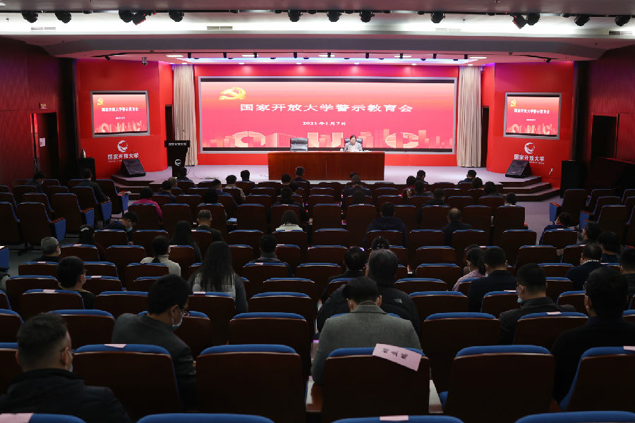 2021年1月7日,國家開放大學召開警示教育會。領導班子成員出席會議,黨(總)支部書記、中層干部、校辦企業(yè)主要負責人80余人參會。